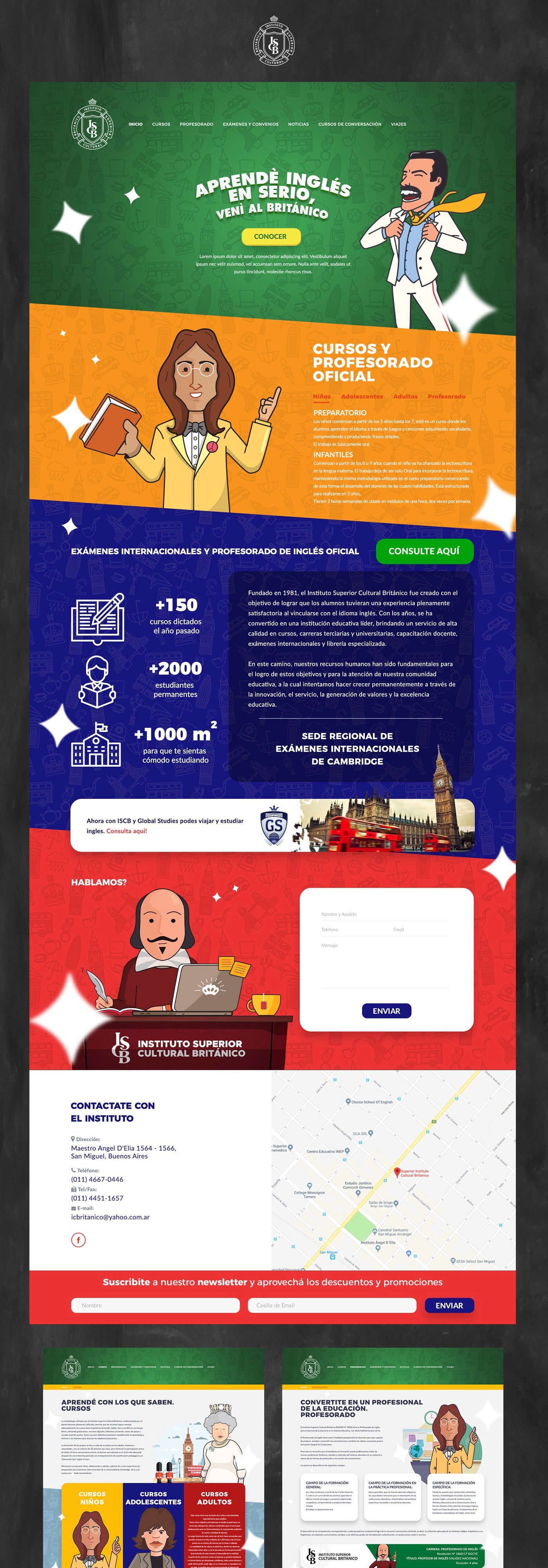 O Instituto Cultural Superior Britânico é uma academia tradicional de ensino de língua inglesa na Argentina, oferecendo uma grade completa de cursos que vão do ensino infantil à formação superior (professorado), além da aplicação de testes de certificação internacionalmente reconhecidos. O principal desafio do projeto foi organizar e comunicar um portfólio educacional amplo e complexo, garantindo clareza para públicos distintos, como alunos, pais e futuros professores. Atuei no design da página institucional, com foco em estruturar a informação de forma hierárquica, acessível e confiável. O objetivo foi traduzir a credibilidade acadêmica da instituição em uma experiência digital clara e moderna e principalmente lúdica, facilitando a compreensão dos diferentes níveis de ensino, metodologias e certificações oferecidas. A interface foi pensada para equilibrar tradição e contemporaneidade, utilizando uma linguagem visual criativa e colorida, tipografia legível e navegação intuitiva. O resultado é uma experiência que reforça a autoridade da marca no ensino de inglês, melhora a descoberta dos cursos e apoia a tomada de decisão dos usuários, fortalecendo a presença digital da instituição e sua proposta educacional.