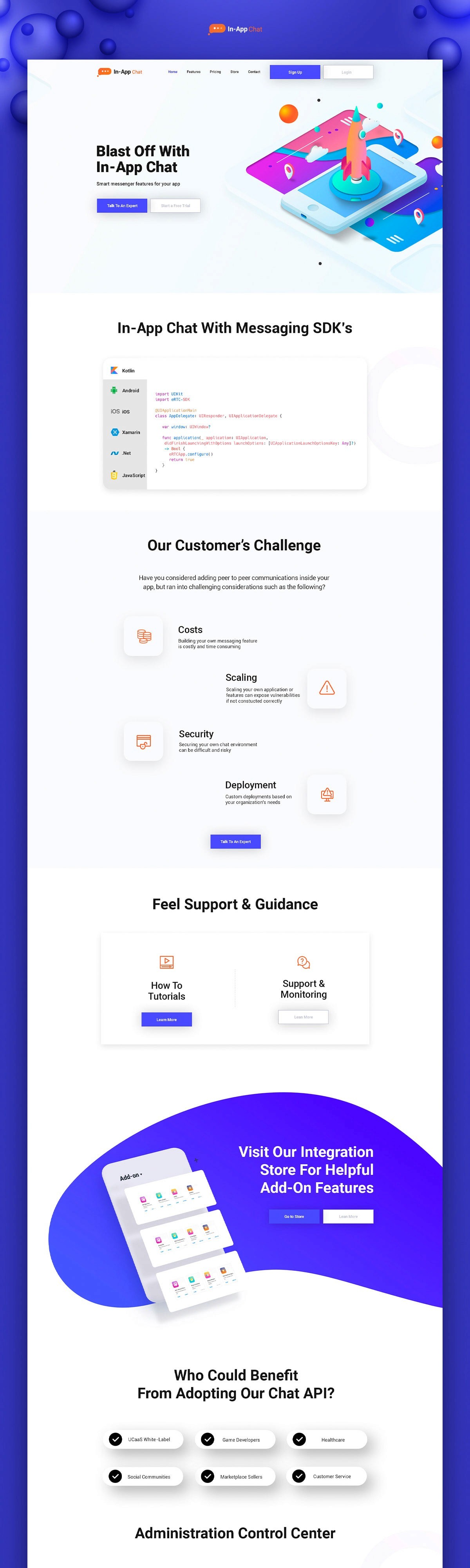 O In-App Chat é um serviço de mensageria incorporável que permite que empresas recebam e respondam mensagens de seus usuários diretamente dentro de seus aplicativos, em tempo real, sem a necessidade de desenvolver ou manter uma solução própria de chat. A proposta central do produto é reduzir complexidade técnica, acelerar time-to-market e melhorar a comunicação entre marcas e consumidores no momento mais relevante da jornada. Atuei no design do site de vendas do In-App Chat com o objetivo de traduzir uma solução técnica robusta em uma narrativa clara, acessível e orientada a conversão. O desafio foi explicar rapidamente o valor do produto, seus principais diferenciais e casos de uso, conectando benefícios como engajamento, suporte contextual, retenção e redução de custos de desenvolvimento às dores reais dos times de produto e engenharia. A experiência foi desenhada com foco em clareza de proposta, escaneabilidade e hierarquia visual, utilizando storytelling, provas de valor e chamadas estratégicas para ação. O resultado foi uma interface que comunica eficiência, confiabilidade e simplicidade, posicionando o In-App Chat como uma solução plug-and-play para empresas que desejam escalar sua comunicação com usuários sem fricção técnica.