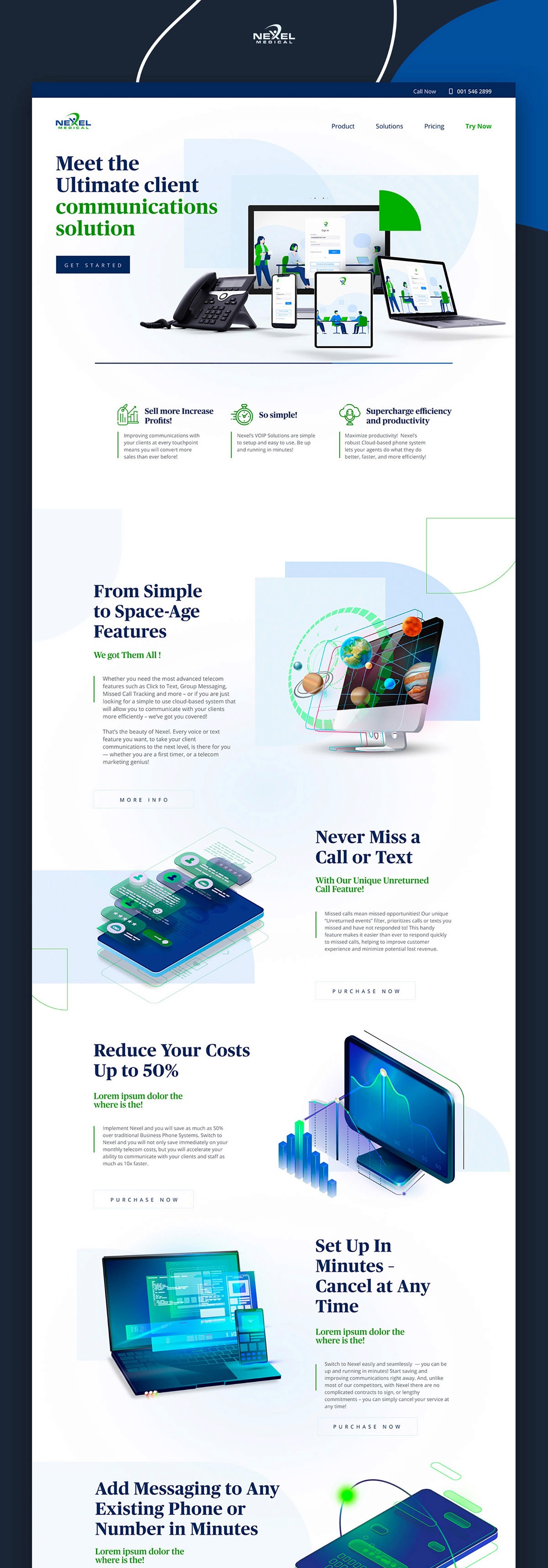 A Nexel é uma solução de automação de voz baseada em inteligência artificial, desenvolvida para substituir a recepção tradicional e garantir que empresas não percam chamadas, oportunidades ou leads. O produto opera 24/7, capturando ligações, qualificando contatos, agendando compromissos e mantendo a operação ativa mesmo fora do horário comercial, um diferencial crítico para negócios orientados a performance. Atuei no desenvolvimento do site de vendas da Nexel, com foco em traduzir uma tecnologia complexa em uma proposta de valor clara, acessível e altamente persuasiva para o público B2B. O desafio principal era educar o mercado sobre um conceito ainda pouco difundido na época, já que o projeto foi concebido em 2020, antes do boom recente da inteligência artificial e da popularização de soluções conversacionais. O design foi estruturado para conduzir o usuário por uma narrativa progressiva, combinando clareza visual, hierarquia de informações e argumentos de negócio orientados à conversão. A experiência equilibra inovação e confiança, posicionando a Nexel como uma solução pioneira em automação inteligente de atendimento e geração de leads, com foco direto em eficiência operacional e crescimento de receita.
