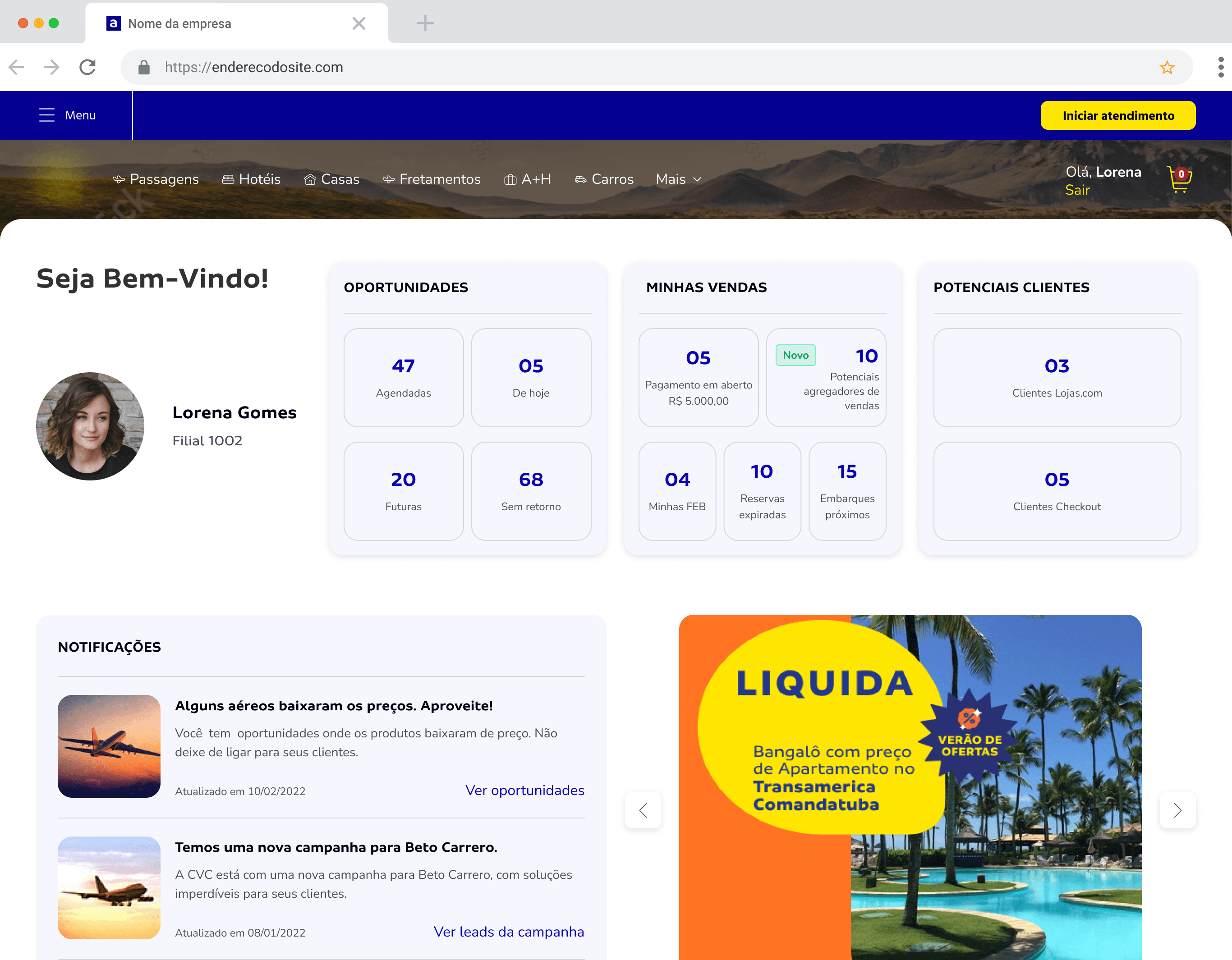 Criar uma solução unificada, intuitiva e eficiente para apoiar o dia a dia dos agentes de viagem.